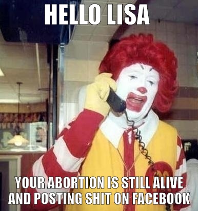 HELLO MADDAM, YOUR ABORTION IS STILL ALIVE AND POSTING STUPID SHIT ON FACEBOOK.