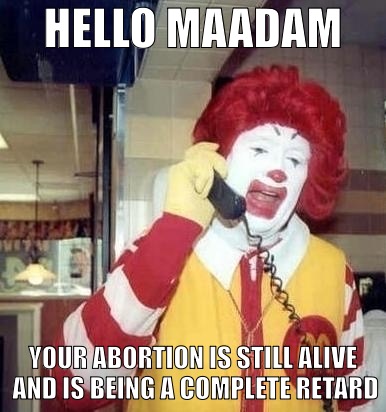 HELLO,MADAM? YOUR ABORTION IS STILL ALIVE AND NOW SAYING STUPID THINGS