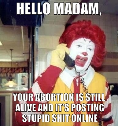 HELLO MADAM? YOUR ABORTION IS STILL ALIVE AND IS NOW COMMENTING ON THINGS THAT AREN’T HIS BUSINESS AT ALL