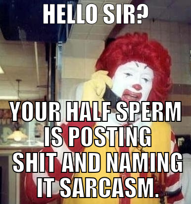 HELLO SIR? YOUR HALF SPERM IS POSTING SHIT AND NAMING IT SARCASM.